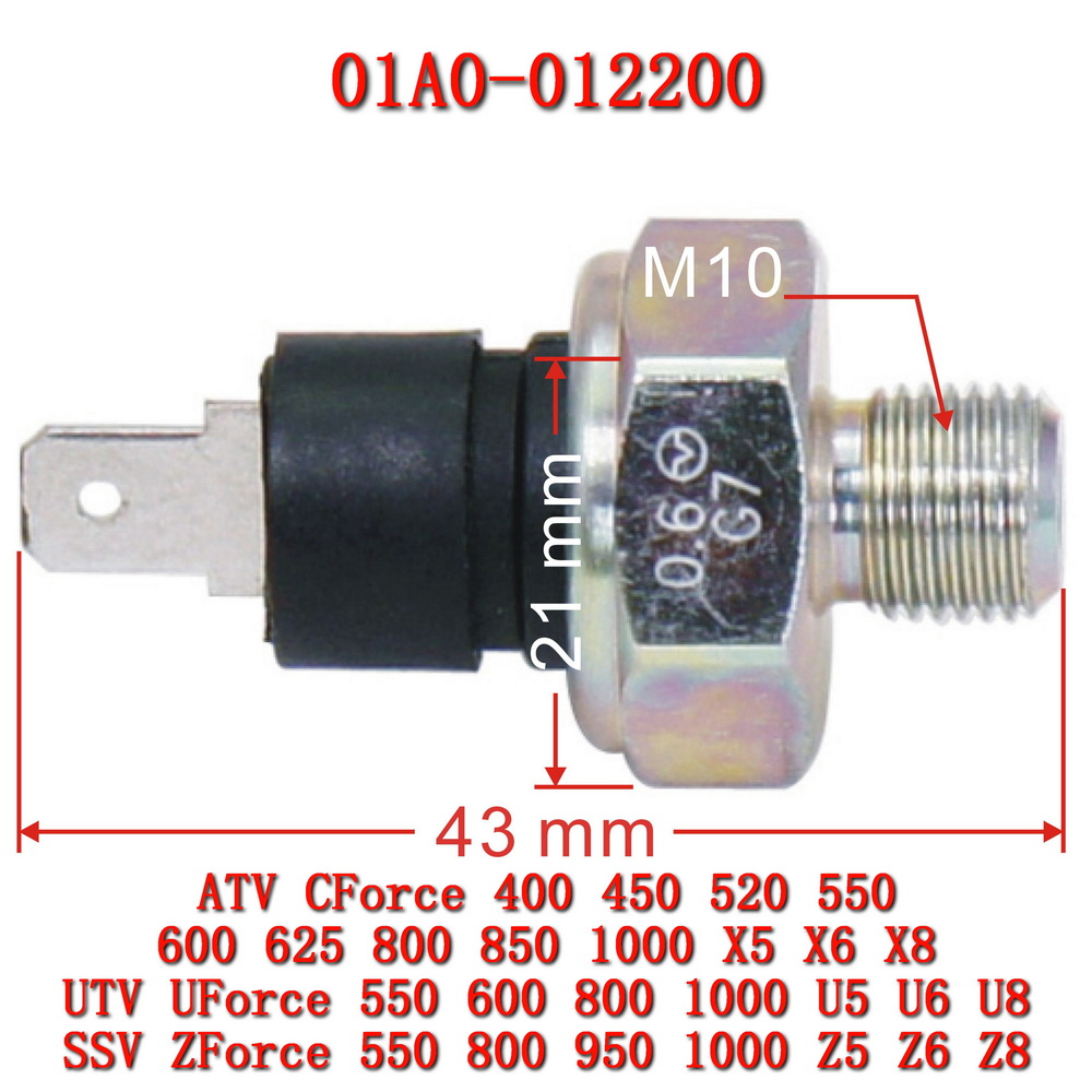 CFMoto Oil Pressure Switch New Part Number: 0800-012400 | Old Part Number: 01A0-012200 Thread Size..