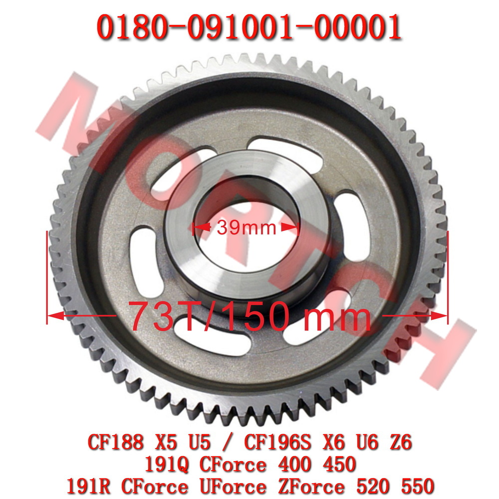 73 Teeth, 150mm OD, 38.8mm Shaft Diameter. Fits multiple CFMoto 400cc-600cc engines.