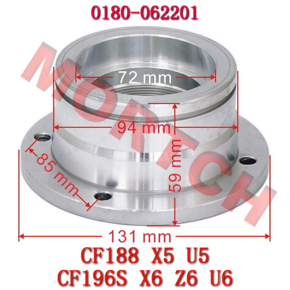 This driven bevel gear bearing seat is a genuine quality replacement part for CFMoto vehicles. It houses the driven bevel gear bearing, ensuring proper positioning and smooth operation of the driven bevel gear. Directly replaces OEM part number 0180-062201 (old part number CF188-062201).