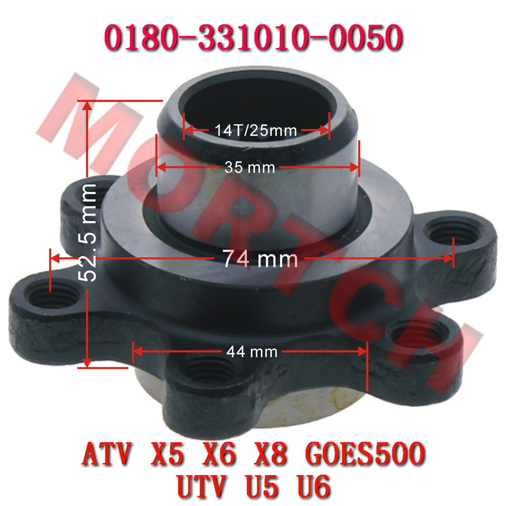 CF Moto listed parts number is 0180-331010-1050 Shaft: 14T/25mm Hole to hole: 18.5mm(center to c..