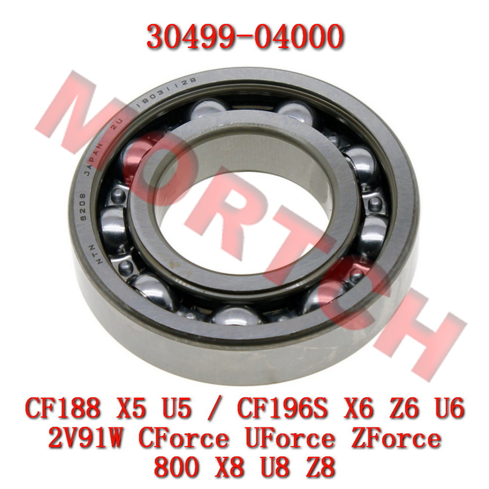 This 6208 bearing is a high-quality OEM replacement for CFMoto, part number 30499-04000. It is a deep groove ball bearing with dimensions 40mm (ID) x 80mm (OD) x 18mm (Width). It is typically installed in the right crankcase to support the crankshaft or transmission main shaft, ensuring smooth rotation.