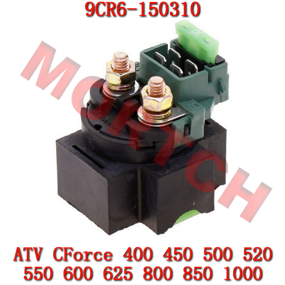 Common CFMOTO model names consist of variations of "CF Moto 400cc ATV", "CF Moto 500cc ATV", "CF Moto 600cc UTV", "CF Moto 600cc UTV", "CF Moto 600cc XUV", "CF moto 600cc 4x4" etc. Common listed CF Moto starter relay part number is 9010-150310-1000 with 'old part number' listed as 901-15.03.10-1 and formal description as "STARTER RELAY".