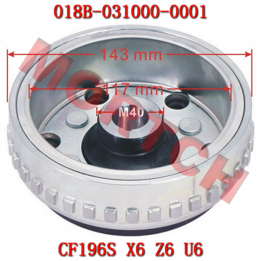📌 Compatibility Note: This 18 pole magneto rotor fits the CFMoto 600cc and 625cc models listed above, equipped with 196S-B and 196S-C engines. Verify rotor dimensions (143mm OD, 117mm ID) before installation.